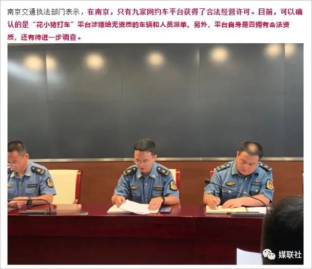 8月19日至8月25日,南京交通部门共查获5辆挂靠“花小猪平台”涉嫌非法营运的黑车。执法人员将依据《网络预约出租汽车经营服务管理暂行办法》有关规定,对驾驶员涉嫌未取得经营许可、擅自从事或者变相从事网约车经营活动的行为,给予一万元以上三万元以下的罚款。南京交通执法部门表示,在南京,只有九家网约车平台获得了合法经营许可。目前,可以确认的是“花小猪打车”平台涉嫌给无资质的车辆和人员派单。另外,平台自身是否拥有合法资质,还有待进一步调查。