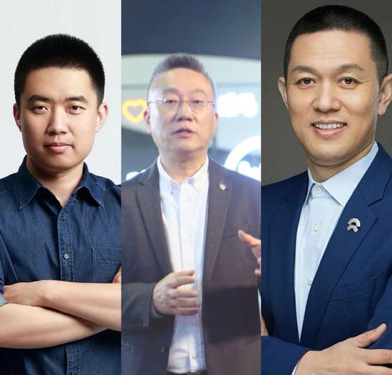 从左至右:李想,理想汽车创始人、董事长兼CEO;沈晖,威马汽车创始人、董事长兼CEO;李斌,蔚来创始人、董事长、CEO