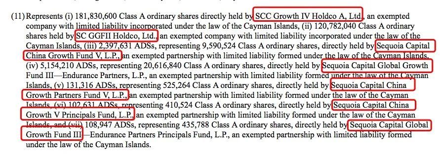 据拼多多财报,这部分股份由红杉中国及红杉资本全球旗下的多支基金共同持有,即SCC Growth、Sequoia Capital China Growth Fund等7支基金。