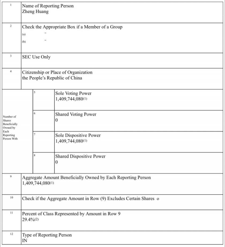 据SEC最新文件,黄峥对拼多多的最新持股比例为29.4%。