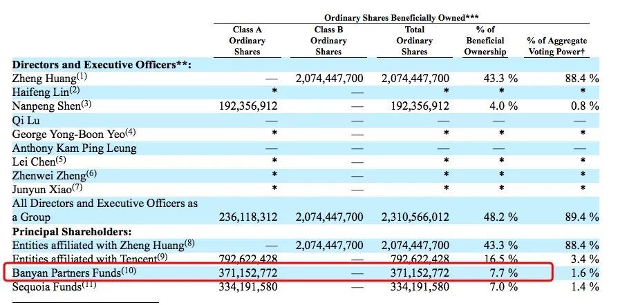 据拼多多今年4月发布的年报,高榕资本旗下的Banyan Partners Funds持有拼多多7.7%的股份。