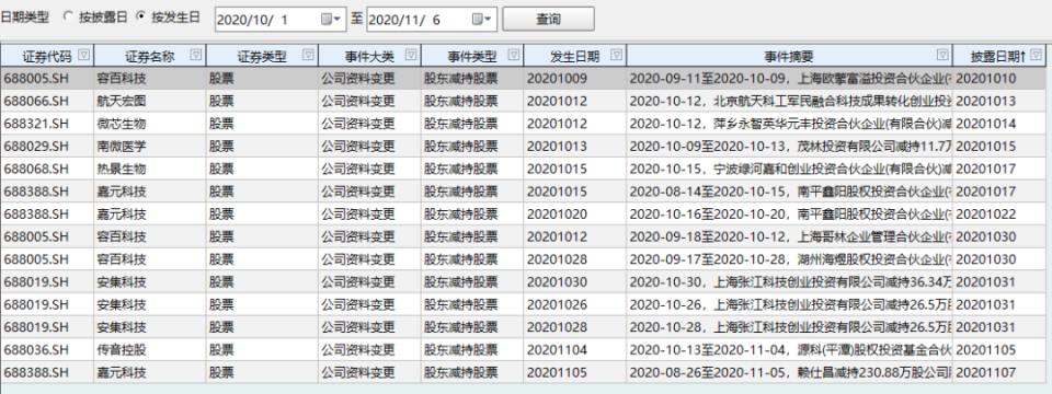 10月以来科创板公司股东减持一览表(数据来源:Wind)