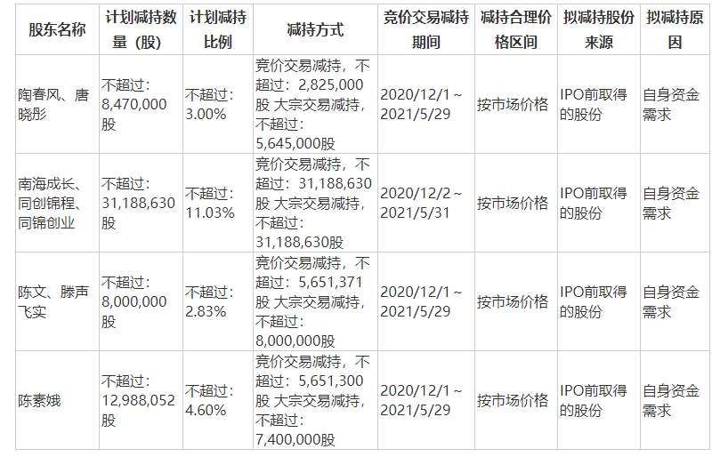 其中,这些股东通过证券交易所集中竞价方式减持的,将于本减持计划披露的减持区间内进行,且任意连续90日内减持总数不超过公司股份总数的1%。 根据公告,这些股东披露的减持区间都是今年12月初到明年5月底。而通过大宗交易方式减持的,则是将于本公告披露之日起3个交易日之后的6个月内进行,且任意连续90个自然日内减持股份总数不超过公司股份总数的2%。