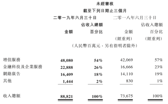 社交网络排在第三,增长23%至人民币207.73亿元;