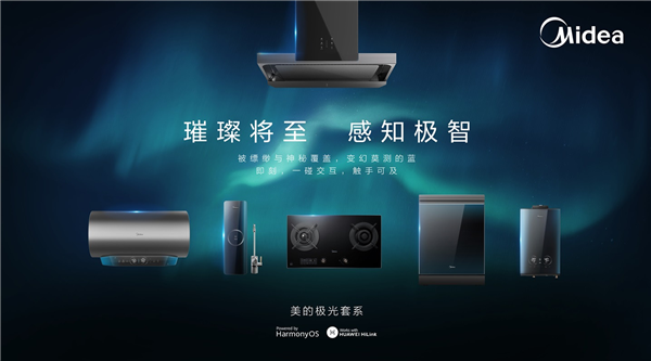 据了解,美的本次搭载鸿蒙系统的产品分别由,油烟机、洗碗机、电热水器、燃气热水器、净水器、智能灶为核心的全场景家电组合,美的将该系列命名为“美的极光套系”。