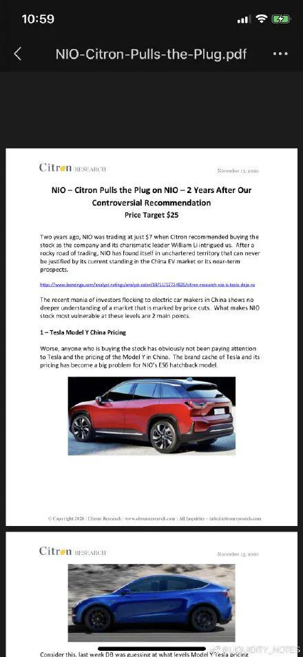 昨夜美股盘中,做空机构香橼资本发表推文,称蔚来汽车目标价应为25美元。