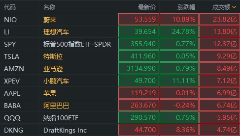 蔚来、理想和小鹏美股早盘集体暴涨