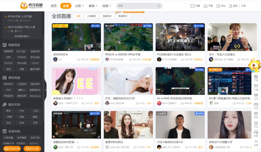 ▲虎牙首页新加了“娱乐天地”,汇集游戏之外的直播