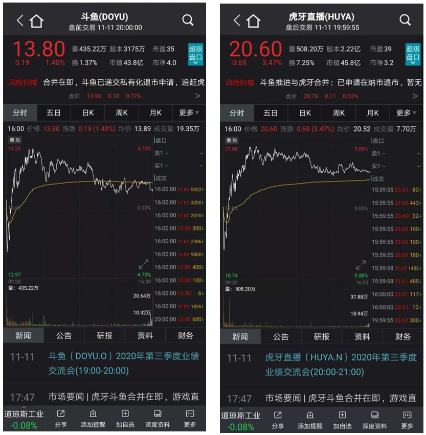 在电话会议上,斗鱼高管表示,11月11日早上斗鱼已经向SEC递交了私有化退市的申报文件,在等待批准。SEC批准生效之后,斗鱼将会举行特别股东大会,对此项合并进行投票表决。SEC和特别股东大会出现意外的可能性并不高,斗鱼退市、与虎牙合并应该是按部就班走程序的事。