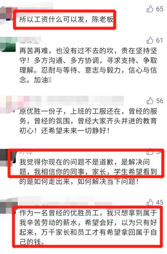 不过,家长、员工却不大满意。有的家长留言,只求退还学费;员工甚至直接发问:所以工资什么时候可以发?
