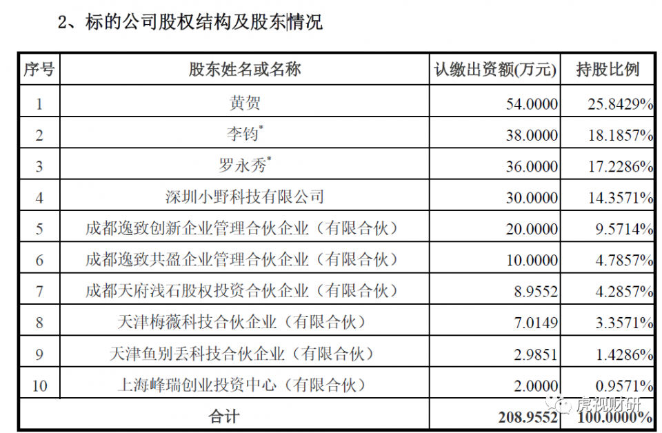 从星空野望目前的股权结构来看,公司前五大股东分别是黄贺、李钧、罗永秀、小野科技、逸致创新。