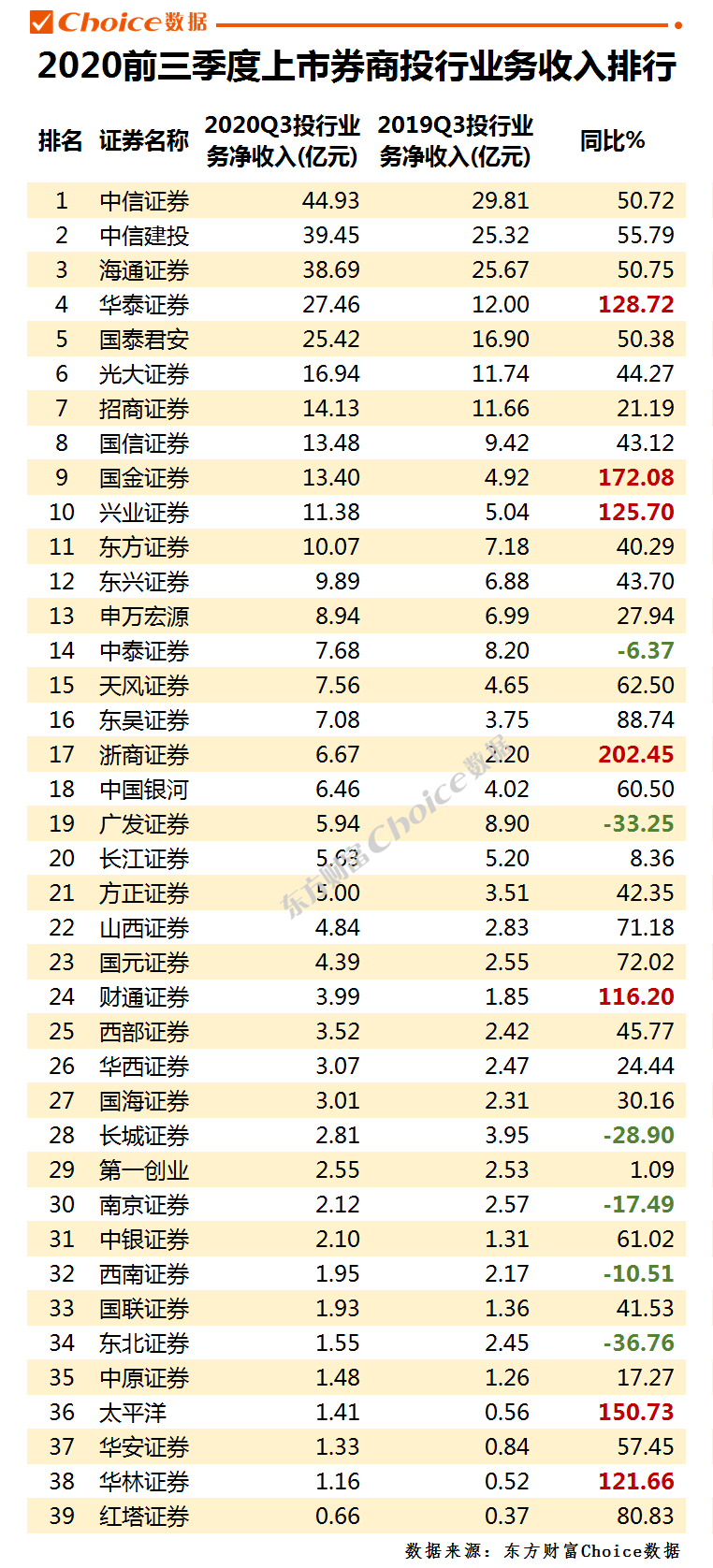 据东方财富Choice数据统计,上市券商方面,中信证券、中信建投和海通证券位居前三,分别实现投行业务净收入44.93亿、39.45亿和38.69亿元。