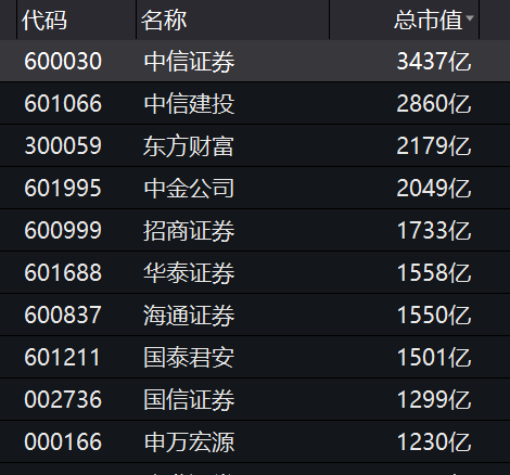 这几家都是现在的券商板块的头部公司,市值都是上千亿的。
