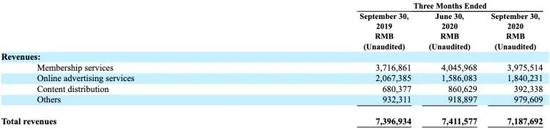 具体来看,公司会员服务业务收入为40亿元,较上年同期增长7%,收入占比提升至56%;在线广告服务业务营收为18亿元,较上年同期减少11%,收入占比下滑至25%。