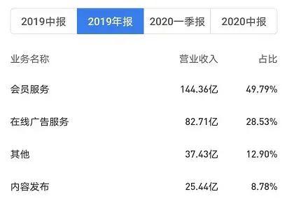 目前,爱奇艺主营业务共分为会员服务、在线广告、内容分发、以及其他业务(新兴业务)四个板块,2019年收入占比分别为50%、29%、8%和13%。
