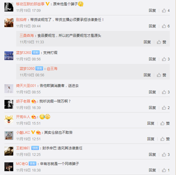 也有人表示:辛有志(辛巴真名)推荐的东西一个不买,但凡有点脑子的都能分辨出来啥叫智商税。