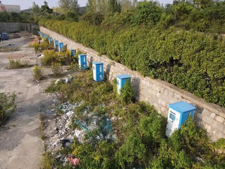 在淮南市舜耕山风景区旁一个充电站,近20个充电桩一字排列,周边杂草丛生。随机打开一个充电桩外壳,本应该放置充电模块的柜体空空如也。附近村民说,充电站一直废弃,村民已经把充电站作为石料堆积场了。