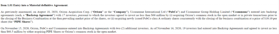 据优客工场披露的公告显示,优客工场分别在2020年8月18日和11月15日获得了合计19位投资者的支持协议以及不少于6650万美元的投资。