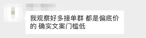 这单生意的议论让原本职业的群一下子成了打工人的抱怨之所。“还不如去外面当个执行文案,工资也就低一点,干完活回家”,“赚的太少了,传统行业才是避风港啊”……
