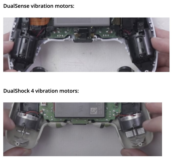 事实上,两家公司都采用了由 Immersion 公司提供的触觉反馈技术,但由于 PS5 手柄的体积更大,与手掌的接触面更多,所以传达到了手掌上的震感会更充实些。