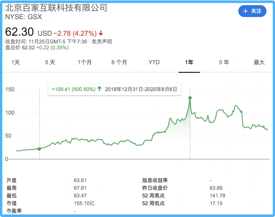 今年8月7日,跟谁学股价达到141.78美元/股的历史高点,市值一度突破300亿美元,超过新东方,在K12领域仅次于好未来,位于行业第二。