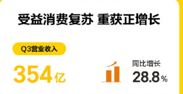 在到店、酒旅业务板块,得益于国内疫情形势的显著改善,交易额和商户端的营销需求都呈现出明显恢复趋势,本季度收入达65亿元。