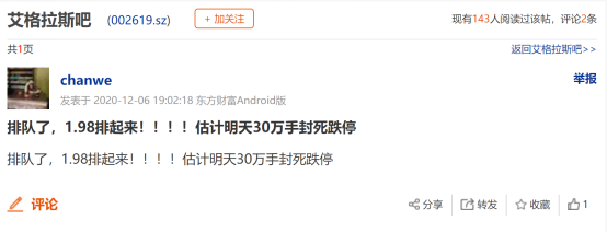 有投资者对股价走势进行了预测,称公司12月7日将 “封死跌停”。