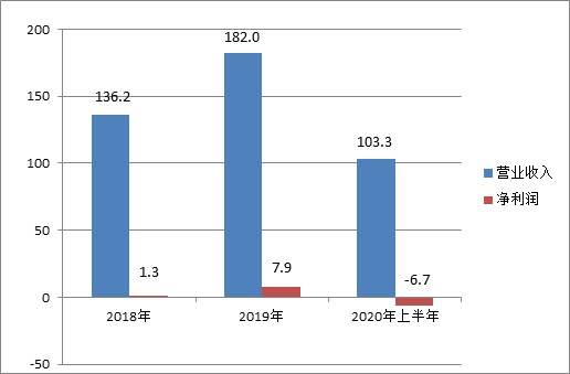 2018年-2020年上半年京东数科营收及净利润表 图:盒饭财经