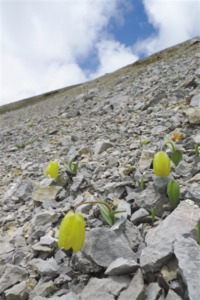 全球共有100多种贝母属植物,其中梭砂贝母生长在我国滇西北,以及川西、青海南部和西藏拉萨至亚东一线海拔3800至5000米的高山流石滩沙石地或岩石缝隙中。它的鳞茎含植物碱贝母素丁,是药材贝母的来源。