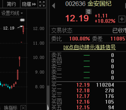 PCB上游材料覆铜板近期开启涨价模式。受涨价利好消息刺激,金安国纪被资金连续拉板。昨日,金安国纪开盘4分钟封死涨停,成交量3897万股,成交额达到4.68亿元。截止最新,该股已收获连续4个涨停板,较12月1日收盘上涨近50%。