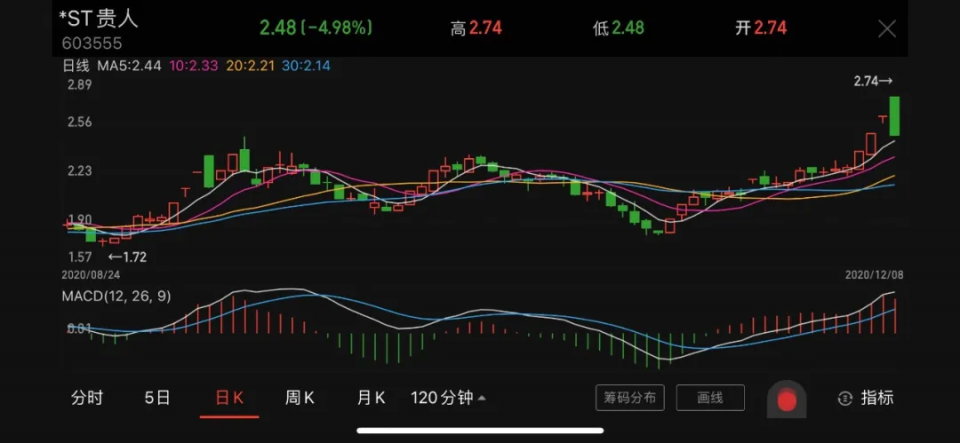 然而,12月8日,贵人鸟股价走向骤变,当天下滑4.98%,以跌停收盘。