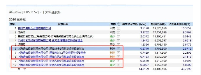 从今年三季度昊志机电前十大流通股东来看,出现了3家私募基金,其中通怡投资旗下3只产品、迎水投资旗下2只产品位列其中,通怡投资3只产品均为新进,迎水投资2只产品有所减持。