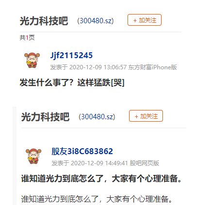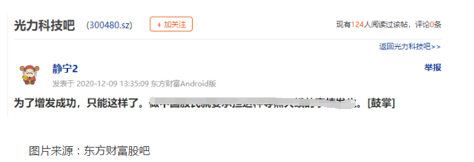 投资者猜测可能与近期光力科技宣布定向增发有关: