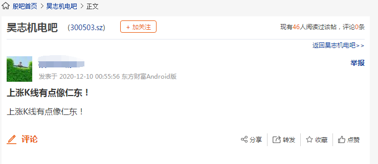 从消息面上来看,昊志机电近两日并无任何利空消息,公司对于股价跳水也暂无回应。股吧里有投资者表示,昊志机电上涨K线有点像仁东控股。