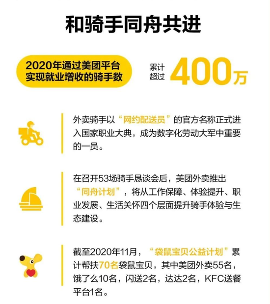不过,这次报告中,美团加入了关于骑手待遇的最新情况。报告中称,在第三季度,美团进一步升级了智能调度配送系统、加强了研发能力、完善了骑手评估模型,在配送时间和任务分配上为骑手提供更多弹性,并将安全指标等加入算法考虑范围等。