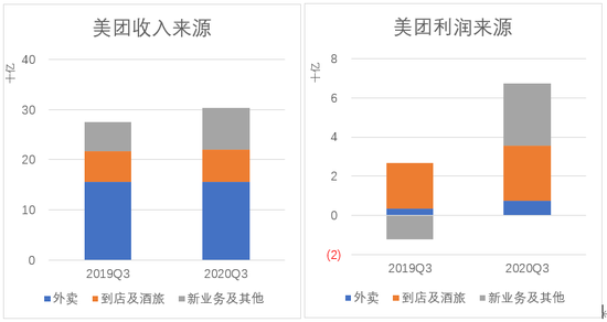 酒旅行业也从疫情带来的毁灭性打击中迅速恢复。美团的酒旅业务基本都在国内,在世界依然疫情肆虐、我国已经控制良好的情况下,受益于宏观环境,美团酒店预订间夜量同比实现3.7%的微涨。虽然不及同程艺龙第三季度15%的间夜量涨幅,但作为一项后发业务,至少没有拖后腿。