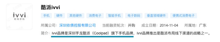 而看起来山寨味十足的 ivvi,背后也有酷派撑腰。天眼查显示,ivvi 是酷派公司的旗下品牌,还曾请赵丽颖担任代言人。