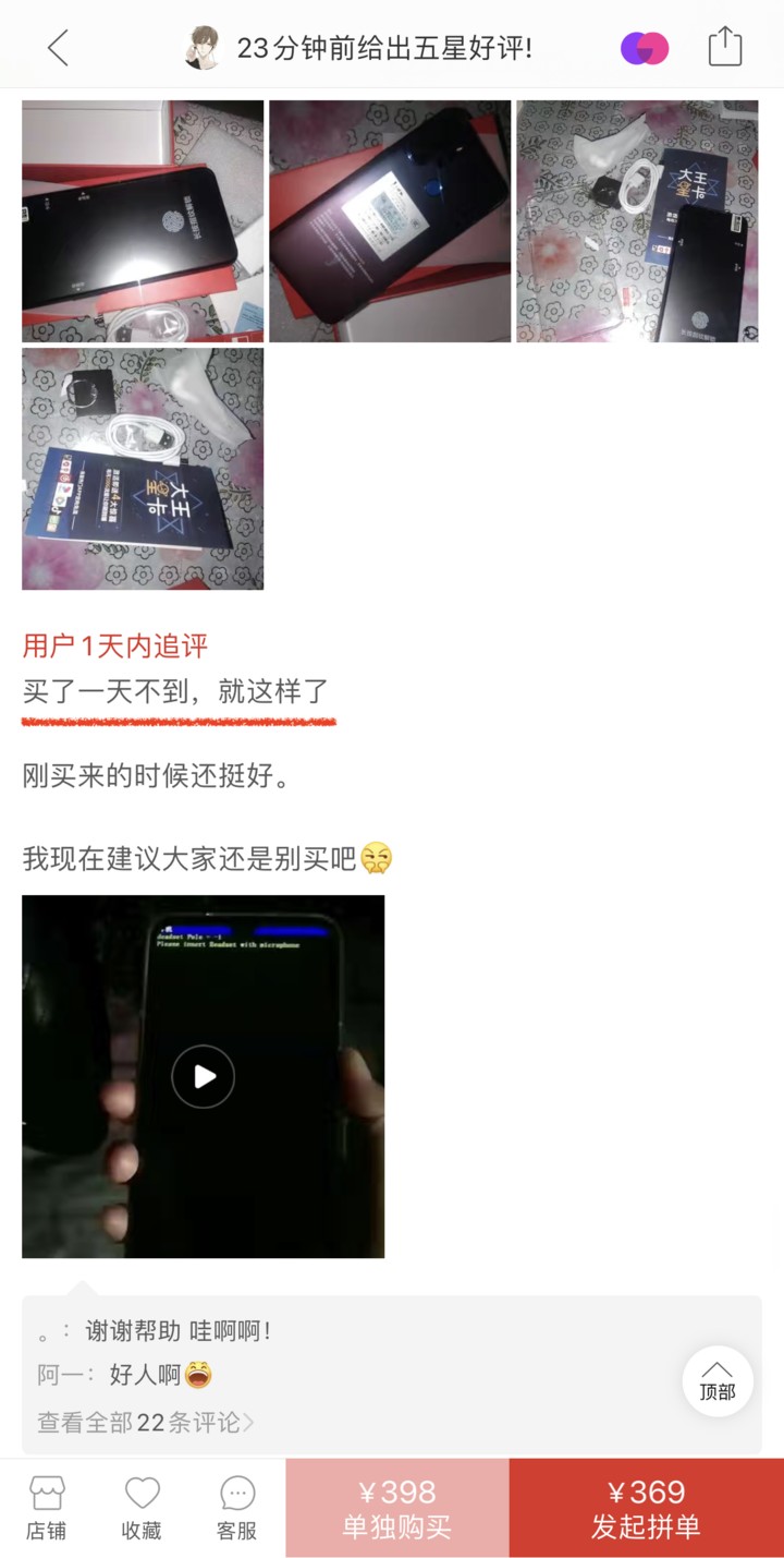 因未实际体验,暂且不论 OIS 光学防抖是不是真的。光从客服的解释和评论区的反馈中,就能断定后面五颗摄像头,只有一颗可以工作,其余四颗都是装饰。