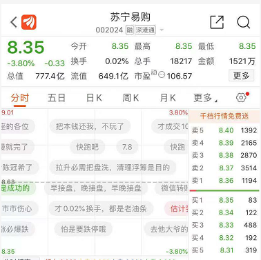 原创内容 快讯:全部股权质押给淘宝 苏宁易购盘前跌幅逼近4% 2020-12-11 09:28:44 分享 炣燃科技12月11日讯(杨洋)昨天,张近东将所有股权质押给淘宝的消息让业内为之一震。不少断言:苏宁缺钱了。今天,受此消息影响,苏宁易购被投资者看空。截止发稿前,其跌幅已逼近4%。甚至不少股民高呼很受伤。