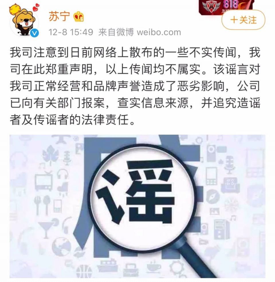 当然,现在苏宁正在竭力否认,认为是谣言并已经报案。