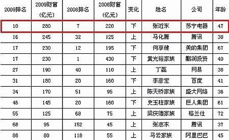 2009年苏宁力压国美,成为中国最大的家电连锁企业,张近东以280亿元的个人财富,在当年的胡润百富榜上位列第10,同在榜上的马云排第88位,刘强东则还没在榜单上有位置。