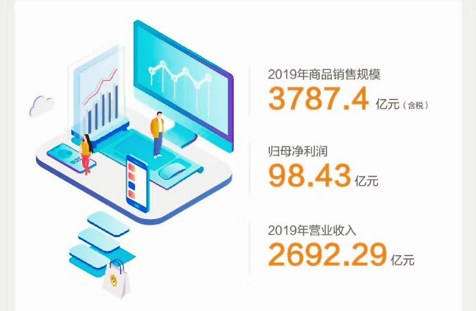 2020年初,刚刚度过疫情高峰期的苏宁发布了2019年的财报。数据显示,苏宁易购2019年全年营业收入2692.29亿元,实现商品销售规模为3787.40亿元,同比增长12.47%。