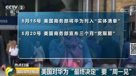 今年5月15日,美国商务部宣布将华为列入“实体清单”,严格限制向其提供美国技术和产品;5月20日,美国商务部做出调整,宣布接下来三个月为“宽限期”,各国企业仍然可以正常向华为供货。8月19日,三个月期限将至,外界关心美国将作出怎样的决定。