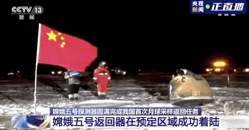 炣燃科技12月17日讯(安迪)北京时间12月17日1时59分,探月工程嫦娥五号返回器在内蒙古四子王旗预定区域成功着陆,标志着我国首次地外天体采样返回任务圆满完成。