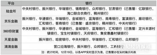 12月19日,21世纪经济报道记者根据各家银行实时展示的情况梳理,截至目前仍有陆金所、京东金融、360你财富、天星金融、滴滴金融等App有存款产品在售。