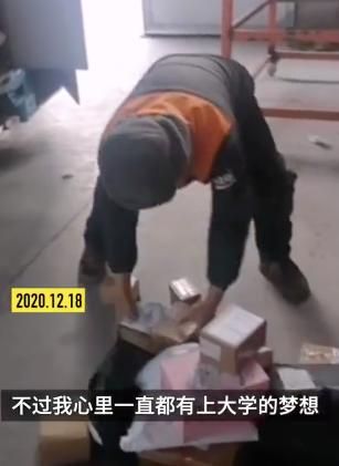 46岁的快递员张艳宝称,他有2个女儿,大女儿23岁在外打工,小女儿12岁在当地小学读四年级,考大学主要是想给她们树立榜样。