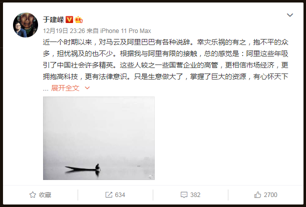日前,知名学者于建嵘在个人社交媒体谈及阿里巴巴时说,针对近一个时期以来,对马云及阿里巴巴有各种说辞。幸灾乐祸的有之,抱不平的众多,担忧祸及的也不少。