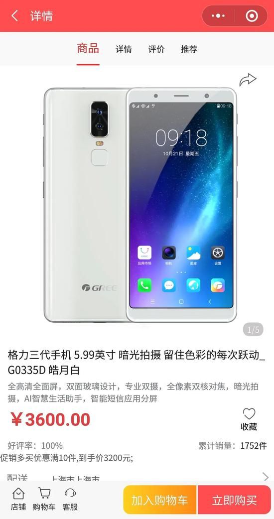 12月16日,在格力官方的“格力董明珠店”,格力三代手机依然有售,根据配置差异售价为3400元和3600元,售价高得离谱。12月21日,记者再次查阅格力官网,格力三代手机已被下架。