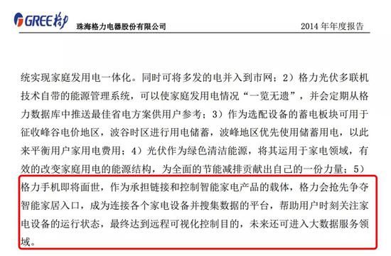 早在2014年年报中,格力便表示未来会进入智能家居领域,而且会以格力手机作为连接智能家居的中心。
