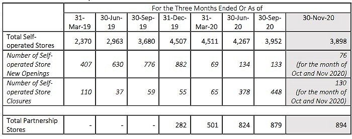 报告还披露,在目前的3898家自营商店中,超过60%的商店在2020年11月实现了盈利。